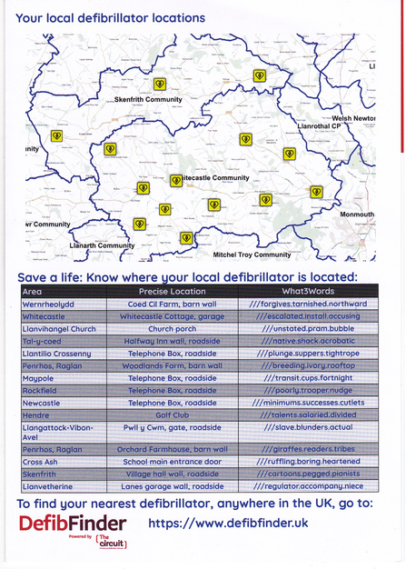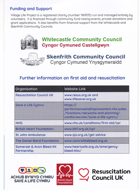 The Village Life Project (VLP) provides defibrillator installation & CPR Training. VLP initially installed defibrillators in five villages within the Llangattock Vibon Avel Community Council area and provides free CPR training courses based on Resuscitation Council UK guidelines.